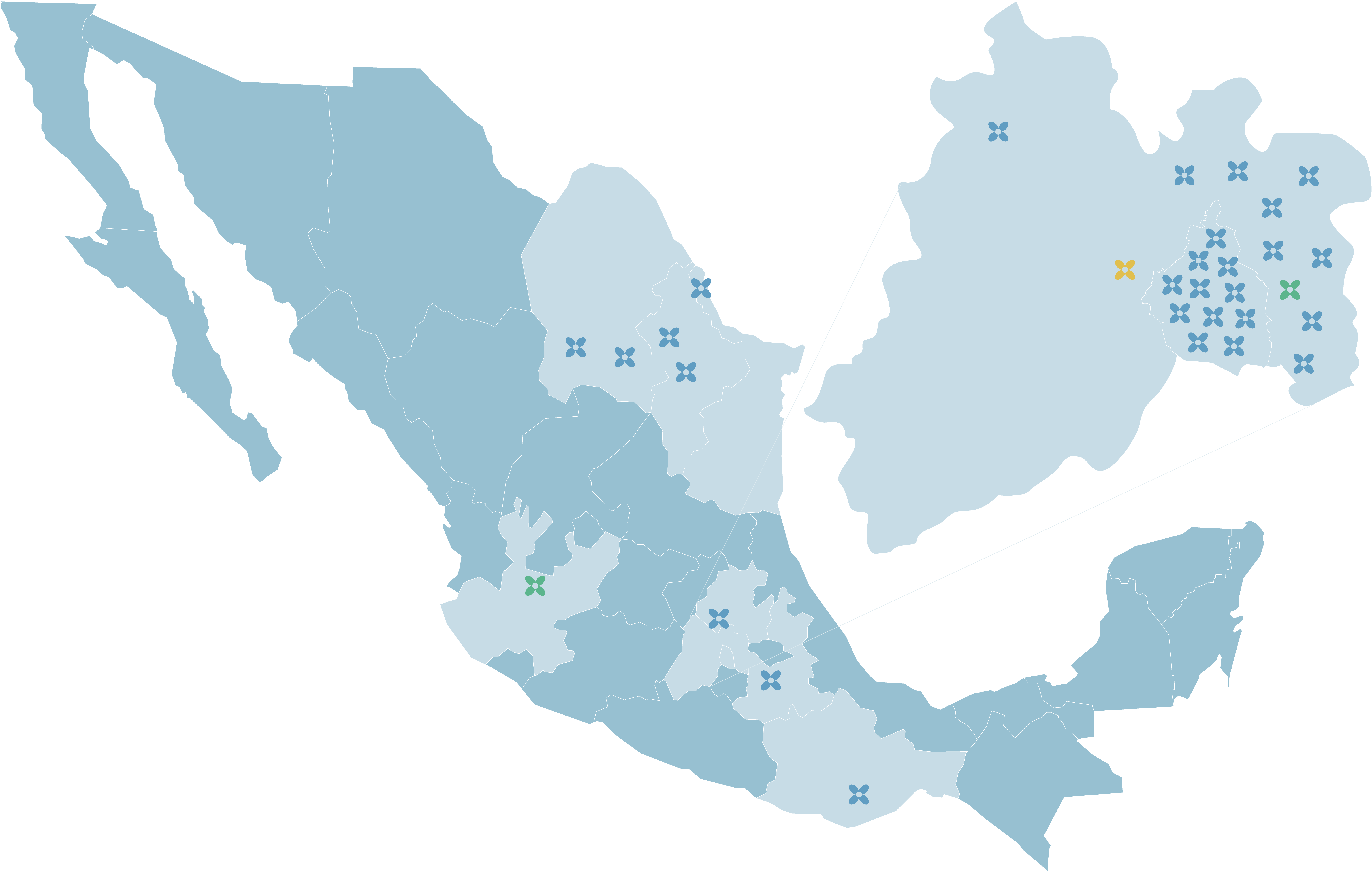 Estamos en 31 puntos ubicados en 9 estados de la República Mexicana: